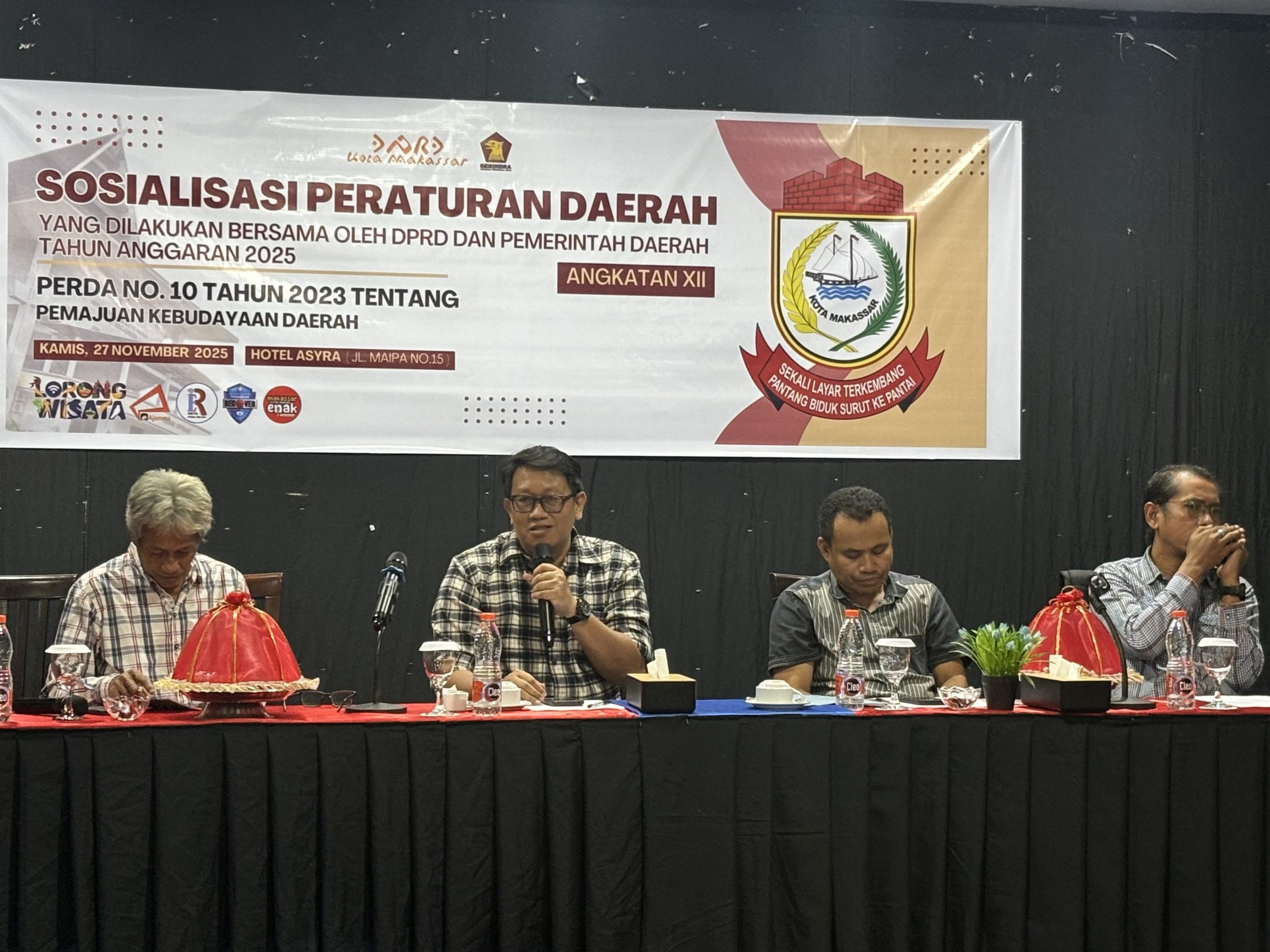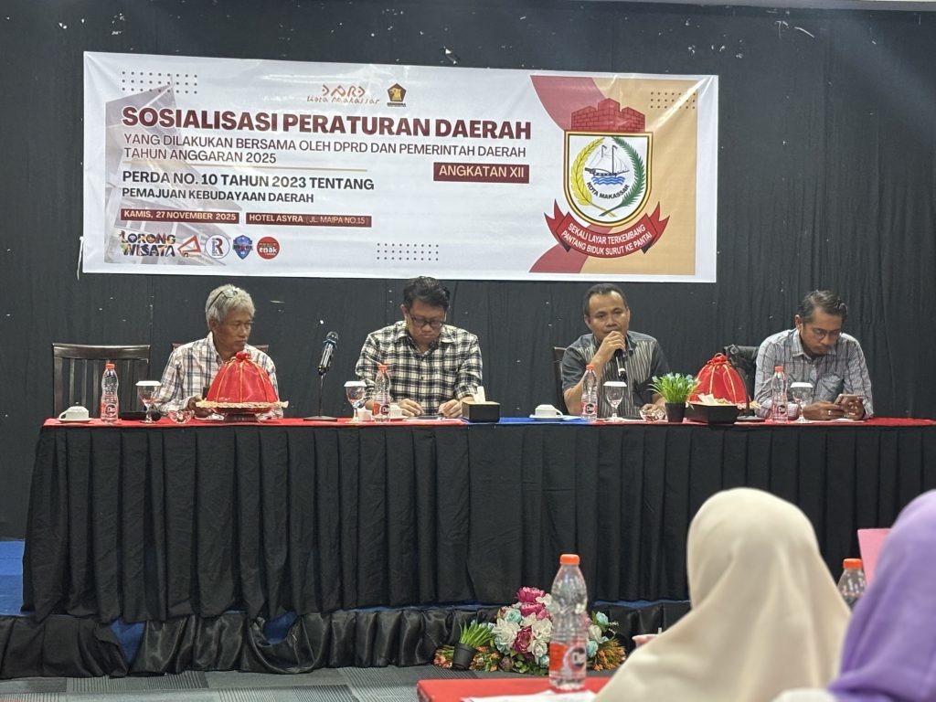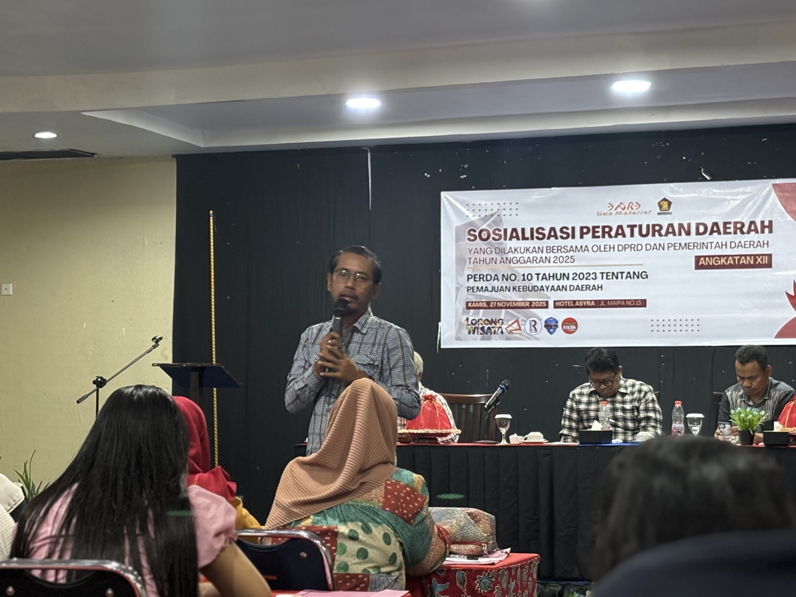 Makassar, Lokanews.id – Sekretariat DPRD Kota Makassar melaksanakan sosialisasi Peraturan Daerah di Hotel Asyra pada Kamis, 27 November 2025. Kegiatan ini mengangkat Perda Nomor 10 Tahun 2023 tentang Pemajuan Kebudayaan Daerah sebagai wujud komitmen memperkuat pelestarian budaya lokal serta mendorong peran aktif masyarakat dalam menjaga identitas budaya Makassar.